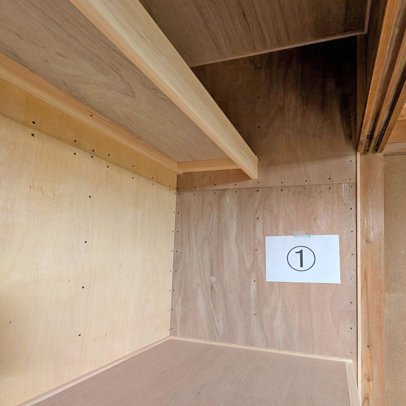 現在、他の工事は継続中ですが、押入れの耐震壁が完成しました。