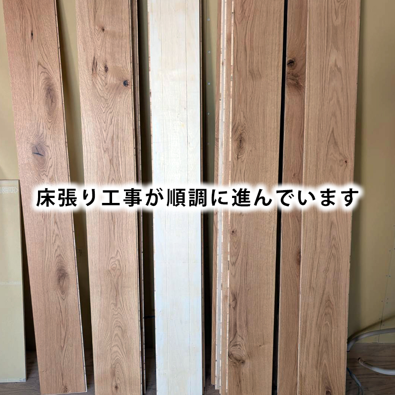床張り工事が順調に進んでおり、床材に直接溝を掘って、間仕切り戸のレールを埋め込んでいます。