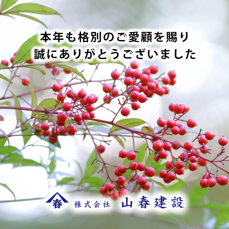 地域の皆さまに支えられ、無事に一年を終えることができましたこと、心より感謝申し上げます。来年も、より一層地域に根ざした誠実な仕事を心がけ、皆さまの暮らしに貢献できるよう努めてまいります。