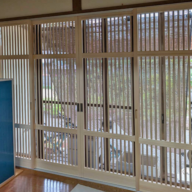 猫の脱走防止用建具を製作しました。 強度はもちろん、通気性にも配慮し、インテリアドアとして違和感のないデザインに仕上げています。